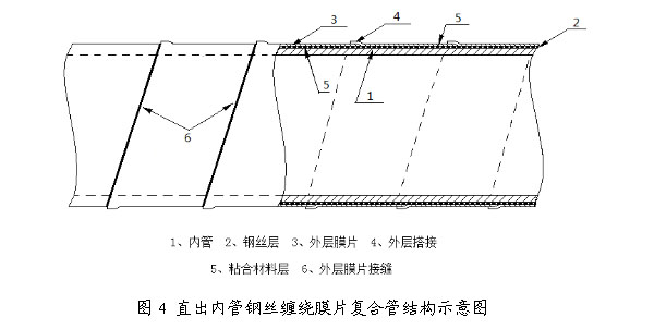 超高分子钢丝网骨架聚乙烯复合管材由直出内管、钢丝和外层云博(中国)三种材料复合而成,适用于大、中口径的中、高压管。管材在生产时先在超高管材挤出机上直接挤出改性超高分子量聚乙烯内管,然后再在内管上热熔复合钢丝和超高云博(中国)。管材结构如图4所示。