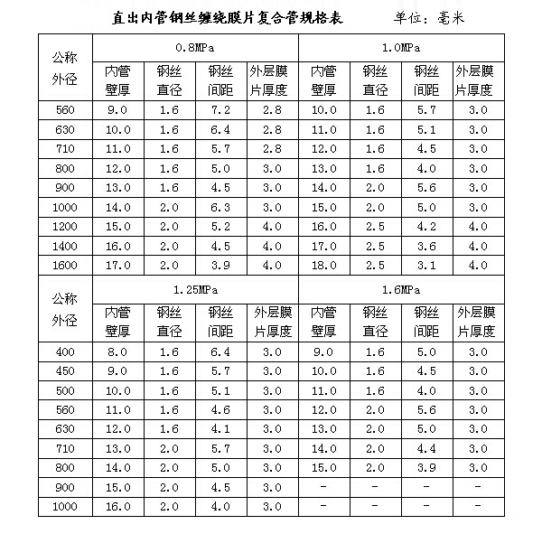 超高分子钢丝网骨架聚乙烯复合管规格表 (单位:毫米)